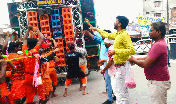 स्लग- समाजसेवी बरकत अली ने कांवरियों पर पुष्प वर्षा कर किया भव्य स्वागत