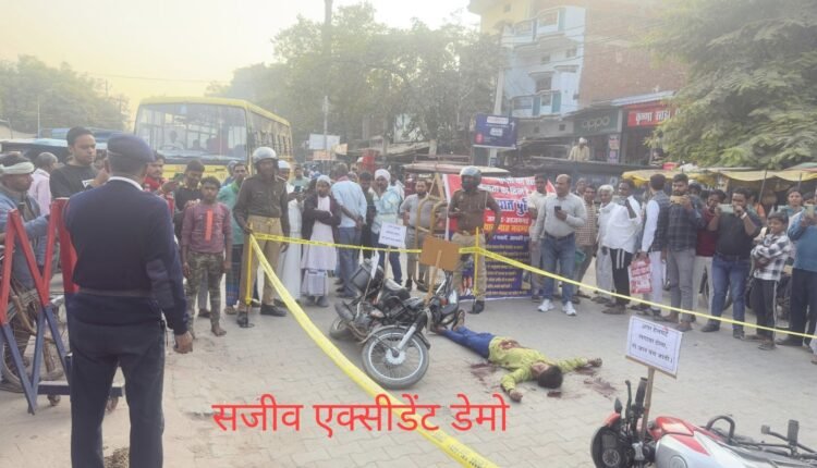 यातायात पुलिस द्वारा एक सजीव सड़क दुर्घटना प्रदर्शन किया गया, जिसमें—