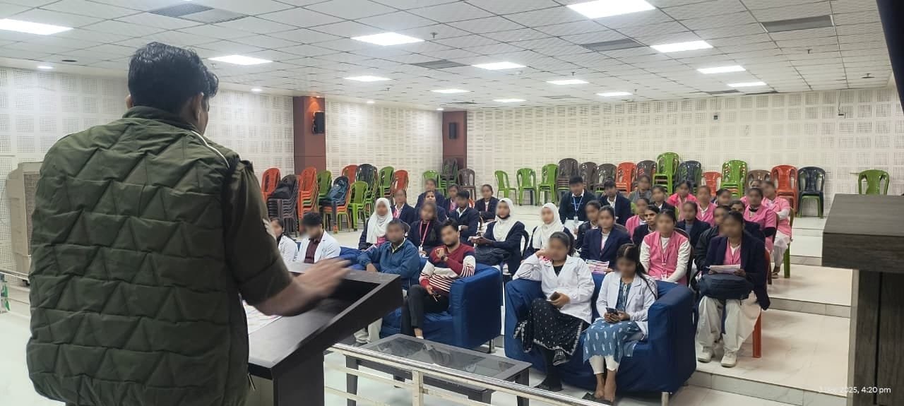 आज दिनांक 03.12.2025 को जनपदीय साइबर थाना/सेल हे0कां0 देवानन्द, कां0 मान सिंह व म0कां0 मोहिनी केशरवानी द्वारा *जीवनदीप इंस्टिट्यूट ऑफ नर्सिंग एण्ड पैरामेडिकल साइन्सेस* भदोही में उपस्थित छात्रों को साइबर फ्रॉड से बचाव व विभिन्न हेल्पलाइन नंबरों की जानकारी देते हुए जागरूक किया गया। अंजान नंबरों से आए कालों सावधानियां बरतने हेतु बताया गया तथा पंपलेट वितरित कर जानकारी दी गई। सोशल मीडिया साइटों का इस्तेमाल करते हुए विशेष सावधानी बरतने तथा अनजान नंबर से भेजें गए लिंक, APK FILES इत्यादि को न खोलने हेतु बताया गया। व्हाट्सऐप कॉलिंग के माध्यम से पैसे की मांग करना,अनचाहे लिंक भेज कर मोबाइल हैक करना अथवा वित्तीय फ्रॉड होने की दशा में हेल्पलाइन नंबर 1930 में cyber.gov.in के बारे में जानकारी दी गई।
