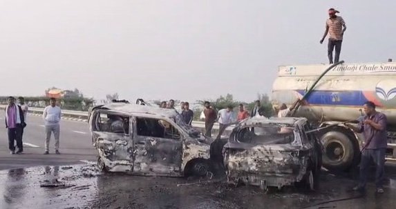 हादसा पूर्वांचल एक्सप्रेसवे पर डीह गांव के पास हुआ। प्रत्यक्षदर्शियों के अनुसार एक्सप्रेसवे पर खड़ी एक वैगन आर में पीछे से ब्रेजा ने टक्कर मार दी, जिससे वैगन आर में लग गई और दोनों वाहन जलने लगे। घटनास्थल पर पुलिसकर्मी और स्थानीय लोग मौजूद हैं। मामले की जांच की जा रही है।