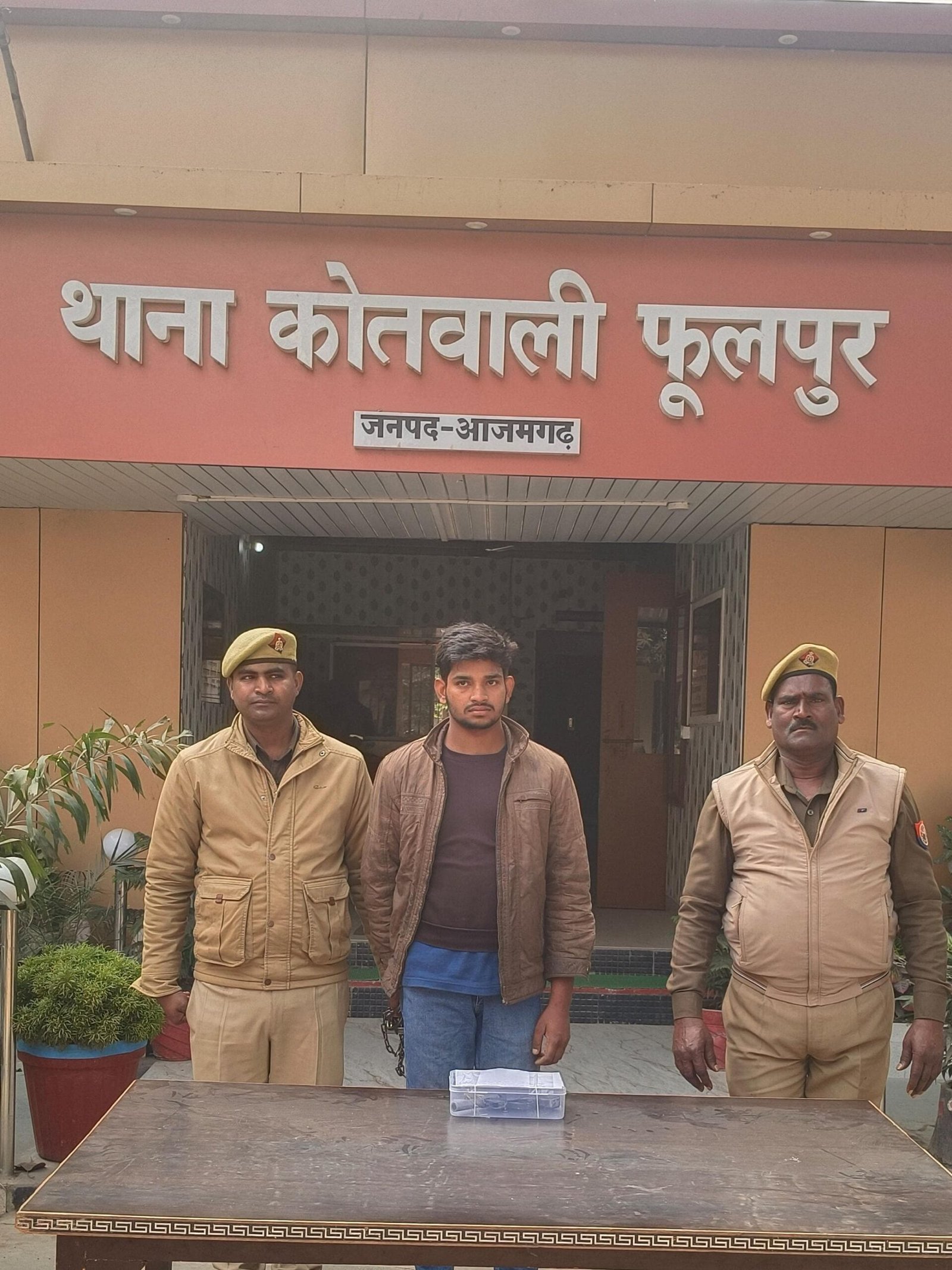 वरिष्ठ पुलिस अधीक्षक आजमगढ़ डा0 अनिल कुमार के निर्देशन में अपर पुलिस अधीक्षक ग्रामिण व क्षेत्राधिकारी फूलपुर के नेतृत्व में चलाये जा रहे अभियान के क्रम में आज दिनांक 01-01-2026 को उ0नि0 सतेन्द्र कुमार मय हमराह बहाउद्दीनपुर मोड़ के पास से अभियुक्त मो0 समीर पुत्र मो लड्डन उर्फ सकलैन ग्राम नई बस्ती अंबारी थाना फूलपुर जनपद आजमगढ़ उम्र करीब 23 वर्ष को एक अदद तमन्चा 315 बोर व एक अदद जिन्दा कारतूस के साथ समय करीब 00.15 बजे गिरफ्तार किया गया। गिरफ्तारी व बरामदगी के आधार पर थाना स्थानीय पर मु0अ0सं0- 02/2026 धारा 3/25 आर्म्स एक्ट पंजीकृत कर चालान मा0 न्यायालय किया गया ।