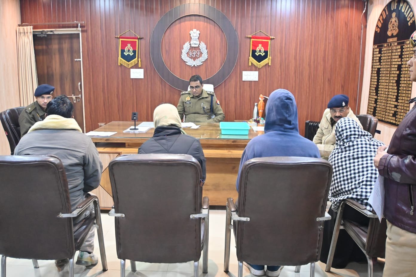 ➡️ *वरिष्ठ पुलिस अधीक्षक आजमगढ़ डॉ0 अनिल कुमार द्वारा प्रशिक्षणाधीन एएसपी श्री प्रेमसुख दरिया व क्षेत्राधिकारी बूढ़नपुर श्री अजय प्रताप सिंह* के साथ पुलिस कार्यालय आजमगढ़ में आयोजित जनसुनवाई के दौरान आमजन की समस्याओं को गंभीरता से सुना गया।