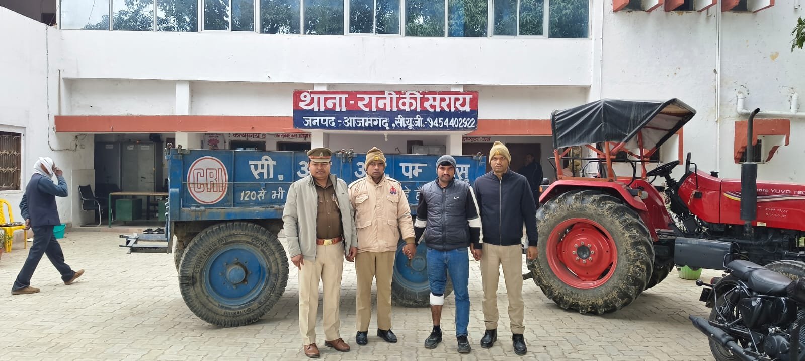 दिनांक 07.01.2026 को वादी श्री राममिलन यादव पुत्र स्व0 भानराम यादव, निवासी ग्राम खलिलाबाद, थाना रानी की सराय, जनपद आजमगढ़ द्वारा थाना स्थानीय पर लिखित प्रार्थना पत्र दिया गया कि दिनांक 06/07.01.2026 की रात्रि में अज्ञात चोरों द्वारा उनके घर के सामने खड़ी ट्रैक्टर-ट्रॉली चोरी कर ली गई है। उक्त सूचना के आधार पर थाना रानी की सराय पर मु0अ0सं0 04/2026, धारा 303(2) बीएनएस बनाम अज्ञात चोर पंजीकृत किया गया। विवेचना के दौरान मुकदमा उपरोक्त में अभियुक्त 1.सुजीत कुमार पुत्र भूलन राम, निवासी मोलनापुर माफी, थाना रानी की सराय, जनपद आजमगढ़ 2.जितेन्द्र मौर्या पुत्र बसावन मौर्या, निवासी मोलनापुर माफी, थाना रानी की सराय, जनपद आजमगढ़ 3.राहुल पुत्र सूर्यनाथ, निवासी मोलनापुर माफी, थाना रानी की सराय, जनपद आजमगढ़ का नाम प्रकाश में आया।