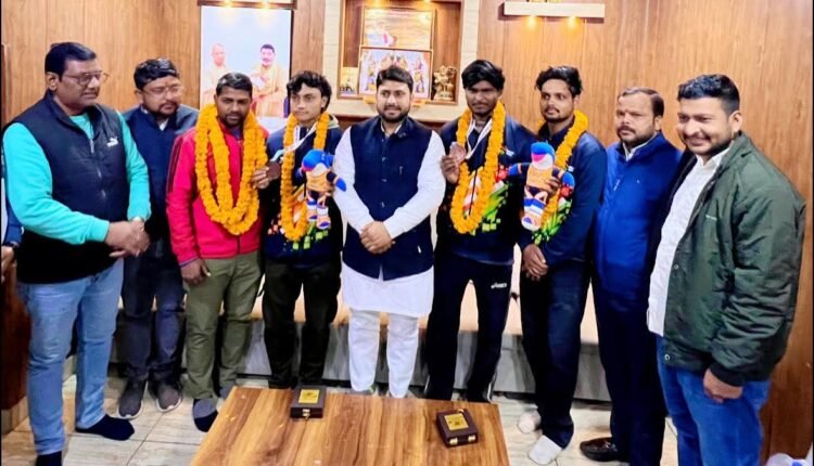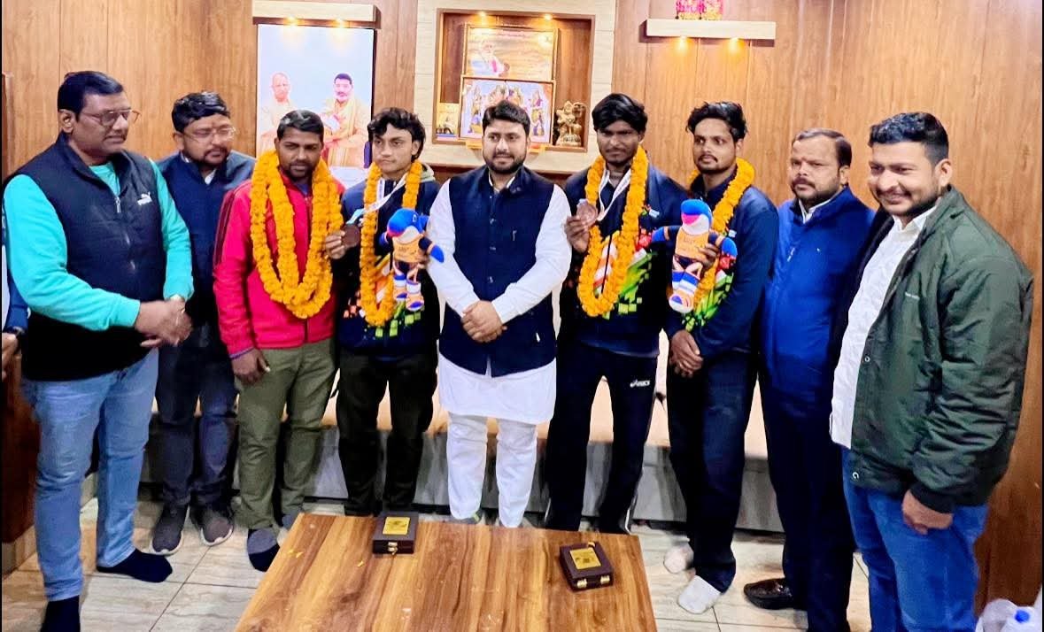 खेलो इंडिया बीच गेम जीतने के बाद आजमगढ़ आगमन पर पेंचक सिलाट स्पोर्ट्स एसोसिएशन ऑफ़ उत्तर प्रदेश के महासचिव सूरज प्रकाश श्रीवास्तव ने सिविल लाइन स्थित कैंप कार्यालय पर सभी खिलाड़ियों का माल्यार्पण और मिठाई खिला कर स्वागत किया।