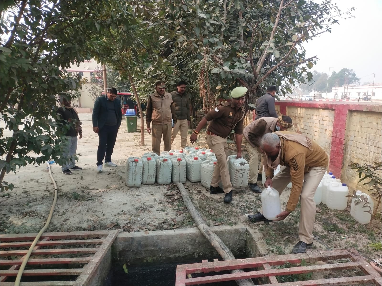 *थाना सरायमीर आजमगढ पर आबकारी अधिनियम से सम्बन्धित मालो का विनष्टीकरण कराया गया*