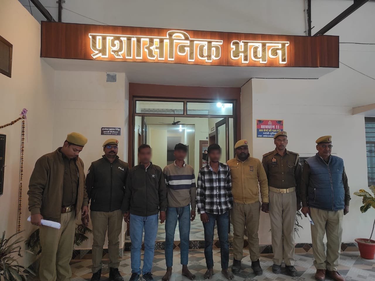 श्री अभिमन्यु मांगलिक, पुलिस अधीक्षक भदोही द्वारा लोक सेवक (पुलिस) को उसके कर्तव्य से विचलित करने तथा गंभीर चोट पहचाने, लोक सेवक पर कर्तव्य पालन के दौरान हमला, आपराधिक बल का प्रयोग करने की घटना में शामिल अभियुक्तों की शीघ्र गिरफ्तारी हेतु निर्देश के क्रम में आज दिनांक 22.01.2026 को गठित पुलिस टीम द्वारा घटना में शामिल मु0अ0स0-16/2026 धारा 121(1)/132/126/191(2)/109(1)/352/351(3) बीएनएस व 7 सीएलए एक्ट से संबंधित अभियुक्त 1. भाईजान पुत्र पप्पू अरशद निवासी अम्बेडकरनगर थाना सुरियावां उम्र 18 वर्ष। 2. धीरज पुत्र बब्लू पथरकट निवासी शिवपुर थाना मडियाहू जनपद जौनपुर उम्र 19 वर्ष। 3. प्रदीप सरोज (बीडीसी मनापुर) पुत्र भीम सरोज मनापुर थाना सुरियावां जनपद भदोही 36 वर्ष। को क्रमशः ग्राम विकईयाधाम, चकश्रीदत्त, दुर्गागंज तिराहे थाना ज्ञानपुर से गिरफ्तार करने में सफलता प्राप्त हुई है। गिरफ्तारशुदा अभियुक्तों का विधिक कार्यवाही के उपरांत चालान संबंधित मा0 न्यायालय किया गया।
