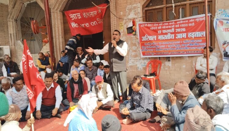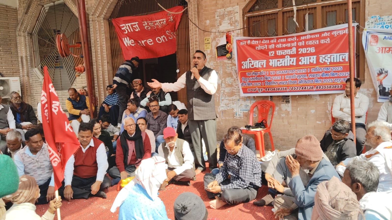 आज दिनांक 12 फरवरी 2026 को देश की ग्यारह मजदूर संगठनों में से दस के आह्वान पर एक दिन की हड़ताल में बैंकों के तीन कर्मचारी /अधिकारी संगठन के सदस्य हड़ताल पर चले गए, इस हड़ताल से सभी राष्ट्रीयकृत, ग्रामीण, सहकारी एवं कुछ देशी/विदेशी प्राइवेट बैंक के कार्य प्रभावित रहे। शहर के सभी बैंकों के कर्मचारी सुबह सुबह यूनियन बैंक के क्षेत्रीय कार्यालय पर एकत्रित हुए तत्पश्चात BSNL कार्यालय पर हो रहे प्रदर्शन में शामिल हुए, इसके उपरांत बैंक ऑफ इंडिया, इंडियन बैंक रैदोपुर के सामने प्रदर्शन में शामिल हुए और वहां से LIC 2 कार्यालय के सम्मुख गेट मीटिंग में शामिल हुए एवं इसमें कई बैंक यूनियन के नेतृत्व के साथियों ने वहां उपस्थित विभिन्न विभागों, संगठनों, बैंककर्मी, बीमाकर्मी, खाताधारकों, पॉलिसी धारकों को आज की इस हड़ताल के कारणों पर विस्तृत प्रकाश डाला। यूपी बैंक एम्पलाइज यूनियन यूपी के सहायक मंत्री साथी विष्णु गुप्ता ने कहा कि आज आप बैंकों की किसी भी शाखा में जाएं तो आपको ढेर सारे कर्मचारी दिखाई देंगे पर वस्तुस्थिति इसके विपरीत है और जनमानस इस भ्रांतियों में रहता है कि सरकार ने भर्ती तो बहुत कर रखी है पर ये बैंककर्मी कार्य ही नही करते पर हकीकत यह है कि आज हर एक बैंक शाखा में बहुत ही कम दैनिक दो चार सौ रुपये पारिश्रमिक पर दो तीन अस्थायी कर्मचारी रख लिये जाते हैं एवं इसमें चार चाँद प्राइवेट बीमा कंपनियों की वे बीमा एजेंट कर्मी जिनमें महिलाएं ज्यादा होती हैं और इन प्राइवेट बीमा कंपनियों की दो से तीन कंपनियां प्रायः सभी बैंक शाखाओं में उच्च प्रबंधन के दवाब में कार्यरत रहती हैं और यही आम जन के खून पसीने की कमाई विभिन्न ऐसी स्कीमों में लगवा देती हैं जो आमजन को भविष्य में बहुत बड़े आर्थिक संकट का कारण बनता है। इसी क्रम में बैंक ऑफ बडौदा के साथी जनार्दन कुमार ने कहा कि आज बैंकों की शाखाओं में पर्याप्त भर्ती न होने के कारण लगभग सभी शाखाओं में अस्थाई साथियों को औने पौने मजदूरी देकर साफ सफाई का कार्य लिया जा रहा है,जिसके चलते बैंक शाखाएं सामान्यतः अव्यवस्थित ही नज़र आती हैं और इन अस्थायी कर्मियों के सुबह सबसे पहले शाखाओं में पहुंच के कारण बैंक फ्रॉड की घटनाएं भी बढ़ रही हैं।केनरा बैंक के साथी दुर्गेश का कहना था कि आज भारत जहां युवाओं का देश है वहीं यह वर्ग स्थाई रोजगार को वंचित है और नेशनल पेंशन स्कीम की जगह ओल्ड पेंशन स्कीम की मांग एक वाजिब मांग करता है। इसी क्रम में यूनियन बैंक से साथी राजकुमार ने आम ग्राहकों पर लगाए जाने वाले सेवा शुल्क को कम करने की मांग की, साथी धीरज चौधरी और रिज़वान अहमद ने एक सुर में आवाज बुलंद की कि बैंकों के कार्य ठेका प्रथा से न किये जायें ताकि आम जन को वित्तीय फ्राड से बचाया जा सके।