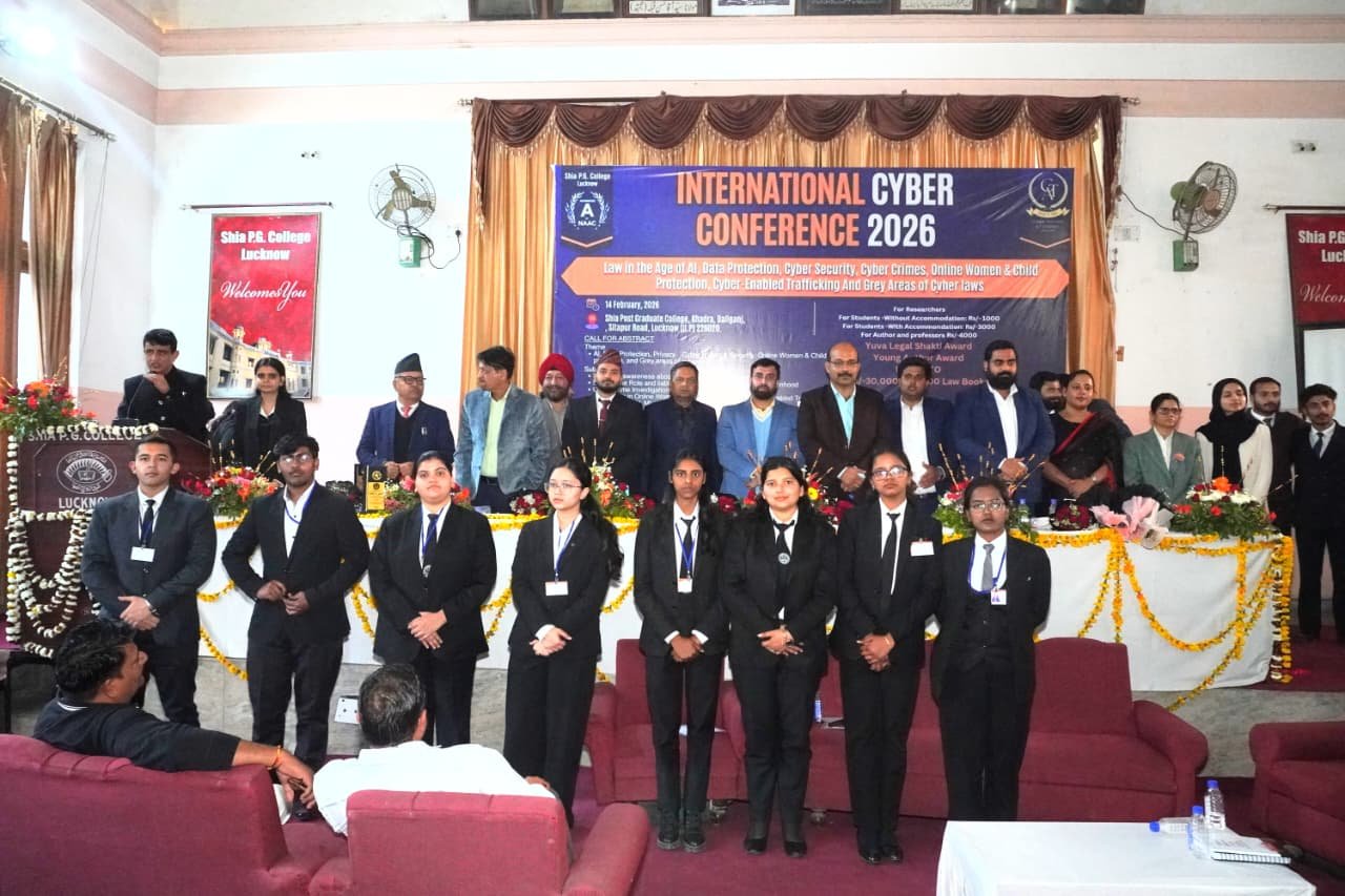 लखनऊ। साइबर टेक्नो अटॉर्नीज एवं शिया स्नातकोत्तर महाविद्यालय, लखनऊ के संयुक्त तत्वावधान में शनिवार को इंटरनेशनल साइबर क्राइम कॉन्फ्रेंस 2026 का आयोजन किया गया। सम्मेलन में साइबर अपराध, डिजिटल गोपनीयता, ऑनलाइन सुरक्षा, साइबर कानून तथा कृत्रिम बुद्धिमत्ता (AI) से जुड़ी नई चुनौतियों पर व्यापक विचार-विमर्श हुआ।