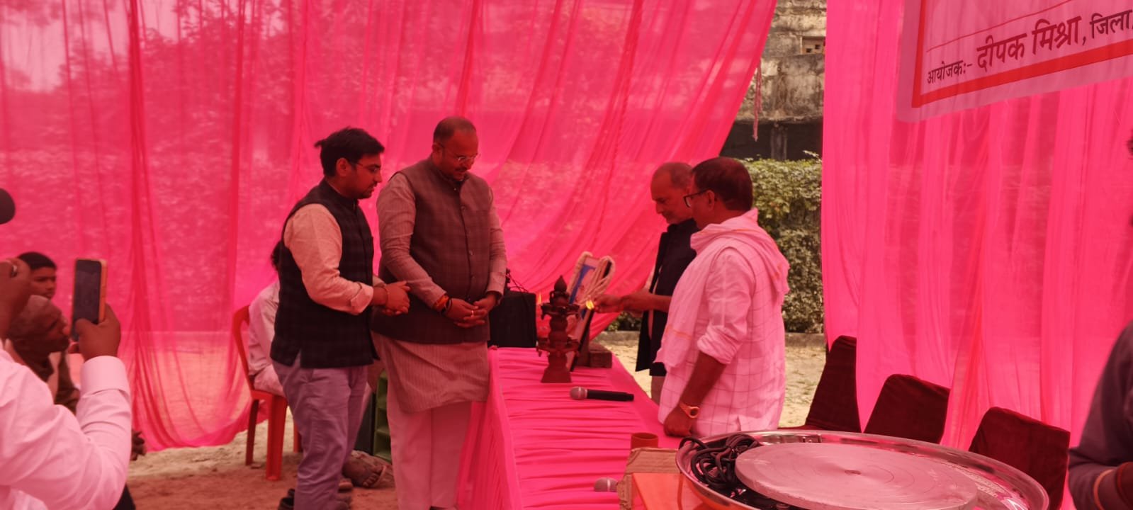 आजमगढ़ 19 फरवरी– कृषि विभाग के परिसर में आज जिला ग्रामोद्योग कार्यालय आजमगढ़ के तत्वाधान में उत्तर प्रदेश माटीकला बोर्ड द्वारा आयोजित एक दिवसीय माटीकला जागरूकता, निःशुल्क विद्युत चालित चाक एवं पगमिल मशीन वितरण कार्यक्रम का आयोजन मुख्य अतिथि श्री मनीष मिश्र, ब्लाक प्रमुख अजमतगढ़ की उपस्थिति में संपन्न हुआ। विशिष्ट अतिथि के रूप में श्री अरविन्द सिंह ब्लाक प्रमुख सठियांव भी उपस्थित रहे। कार्यक्रम में लगभग 200 से अधिक संख्या में माटीकला से जुडे कारीगर व कुम्हार/प्रजापति समाज के लोग उपस्थित रहे।