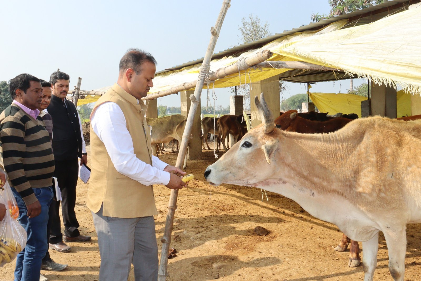 गौशाला में जिलाधिकारी ने गोवंश को खिलाया केला व गुड़