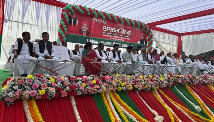 समाजवादी पार्टी की एस. आई. आर. के सिलसिले में पी.डी.ए. भवन, मुख्य पार्टी कार्यालय, अनवरगंज, आजमगढ़ पर पार्टी के वरिष्ठ नेताओं, सांसदों,विधायकों व वरिष्ठ पदाधिकारी व विधानसभाओं के सेक्टर, जोन, ब्लॉक प्रभारी की बैठक को संबोधित करते हुए सांसद श्री धर्मेंद्र यादव ने कहा कि भा.ज.पा शासन सत्ता का दुरुपयोग कर वोटर लिस्ट में गड़बड़ी कर बेईमानी से चुनाव जीतना चाहती है उसका संविधान व लोकतंत्र में विश्वास नहीं है केवल दमन,अत्याचार व फर्जी मुकदमों में फंसा कर चुनाव जीतने का प्रयास कर रही है जिसको समाजवादी पार्टी के पदाधिकारी और कार्यकर्ता कामयाब नहीं होने देंगे। उन्होंने पार्टी के पदाधिकारी व कार्यकर्ताओं को धन्यवाद दिया कि लोग संघर्ष कर और मुस्तैदी से खड़े होकर भा.ज.पा. के फॉर्म-7 को भरने में नाकाम किया क्योंकि हम लोगों को यह संघर्ष 2027 का चुनाव जीतने तक का जारी रहेगा हमारे कार्यकर्ता कटिबद्ध है।