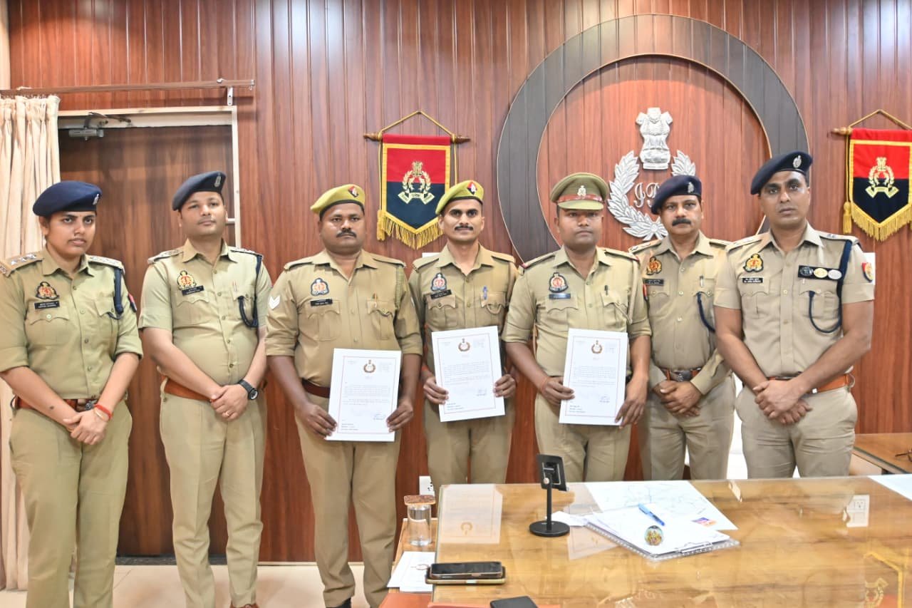 *वरिष्ठ पुलिस अधीक्षक आजमगढ़ ने थाना बरदह पुलिस के सराहनीय कार्य पर 04 पुलिसकर्मियों को प्रशस्ति पत्र देकर किया सम्मानित।*
