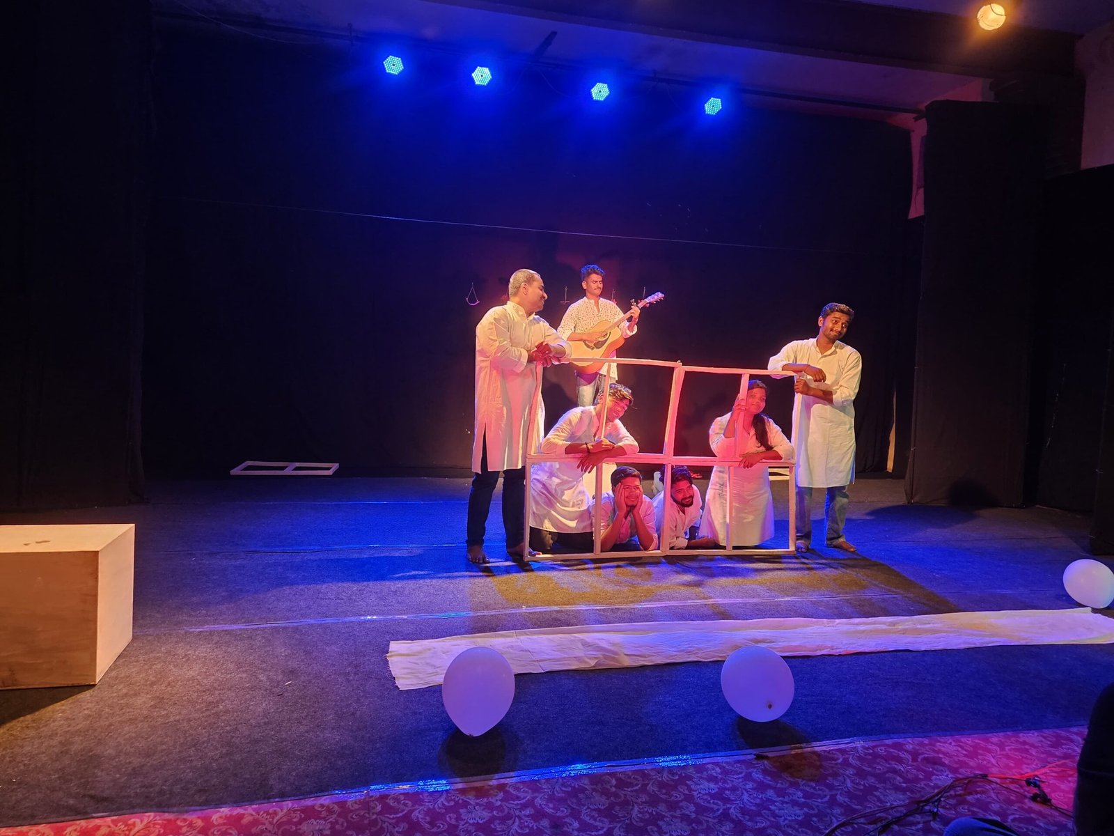 आजमगढ़ । दिनांक 27 मार्च 2026 स्थान । “भरत मुनि सभागार” आनंद मार्ग स्कूल ऑफिसर्स कॉलोनी रैदोपुर आजमगढ़ में विश्व रंगमंच दिवस के अवसर पर सूत्रधार संस्थान आजमगढ़ द्वारा कविताओं पर आधारित नवीनतम नाट्य प्रस्तुति ‘ स्वप्न मे मुस्कुराना’ का मंचन किया गया. इस प्रयोगधर्मी प्रस्तुति का सफल निर्देशन ख्यातिलब्ध निर्देशक अभिषेक पंडित ने किया। नाटक की शुरुआत सूत्रधार (अनादि अभिषेक) के मंच पर आगमन से होता है फिर क्रमशः अभिनेताओं द्वारा भिन्न- भिन्न कवियों की कविताओं के साथ अपने शारीरिक गति और लय के माध्यम से कविताओं को सजीव दृश्य मे बदलते हुए, इन कविताओं मे निहित सूक्ष्म प्रतिकों और उसके विम्बो को दृश्य मे ढाला गया। मंच पर इस तरह की प्रस्तुति ने दर्शकों को चमत्कृत किया। सबसे पहले सत्यार्थ अनिरुद्ध पंकज की कविता मैने उससे कहा क्या तुम्हारे पास चाभी है मेरी, अशोक वर्मा की कविता प्रेम बहुत उथला भी है घुटनों नहीं जांघों तक,सर्वेश्वर दयाल सक्सेना की कविता तुम्हारे साथ रहकर अक्सर मुझे ऐसा महसूस हुआ, बृजेश यादव की कविता तुम्हारा जाना, और जारी है धर्मयुद्ध, और अंतिम कविता पराग पावन की पंजे भर ज़मीन को युवा अभिनेताओ द्वारा एक स्वप्निल संसार मे परिवर्तित किया गया। जहाँ प्रेम अपने कई मायनो और सन्दर्भ मे उभरती है, और यथार्थ के विदरूपताओं को भी रेखंकित कर जाती हैँ। निर्देशक की कल्पनाशील मंचिय युक्तियाँ, जिसमे कुछ मुखोटे कुछ लकड़ी के फ्रेम, कुछ पटके कुछ गुब्बारे वस्तु भर नहीं रह जाते बल्कि अंतर्मन की परतों को उभारने मे सहायक सिद्ध होते हैँ। मंच पर युवा अभिनेता दल (नेहा रिद्धि मित्रा, शिवा यादव, राहुल यादव, सत्यम कुमार, पुलकित टिबडेवाल, हर्ष मौर्या के समूह की ऊर्जा, उनके शरीर की गति,लय प्रस्तुति के विषय वस्तु को उकरते हैँ। इन युवा अभिनेताओं ने अपने अभिनय कौशल से दर्शकों को तालियाँ बटोरी। यह प्रस्तुति युद्ध के विरुद्ध प्रेम को एक हथियार की तरह देख पाने मे सफल होती हैँ। इस प्रस्तुति को सफल बनाने मे अनादि अभिषेक का संगीत, सूरज सहगल का मंच विनन्यास, ममता पंडित का वस्त्र परिकल्पना, हरिकेश मौर्य की बेहतरीन प्रकाश परिकल्पना का योगदान महत्वपूर्ण रूप से उल्लेख करने योग्य हैँ। मंच व्यवस्था विवेक पाण्डेय और विनीत कुमार ने परिकल्पत किया जो की इस काव्य प्रस्तुति के अनुरूप रही। सहायक निर्देशक के रूप आदित्य अभिषेक और अरविन्द पाण्डेय ने योगदान दिया। संचालन अंगद कश्यप ने किया. प्रस्तुति व्यवस्थापक सूरज नाथ यादव रहे.मंचन पूर्व*सूत्रधार संस्थान के अध्यक्ष डॉo सी के त्यागी एवं उपस्थित गणमान्य अतिथियों के द्वारा संयुक्त रूप से दीप प्रज्ज्वलित कर नाटक का शुभारंभ किया गया।