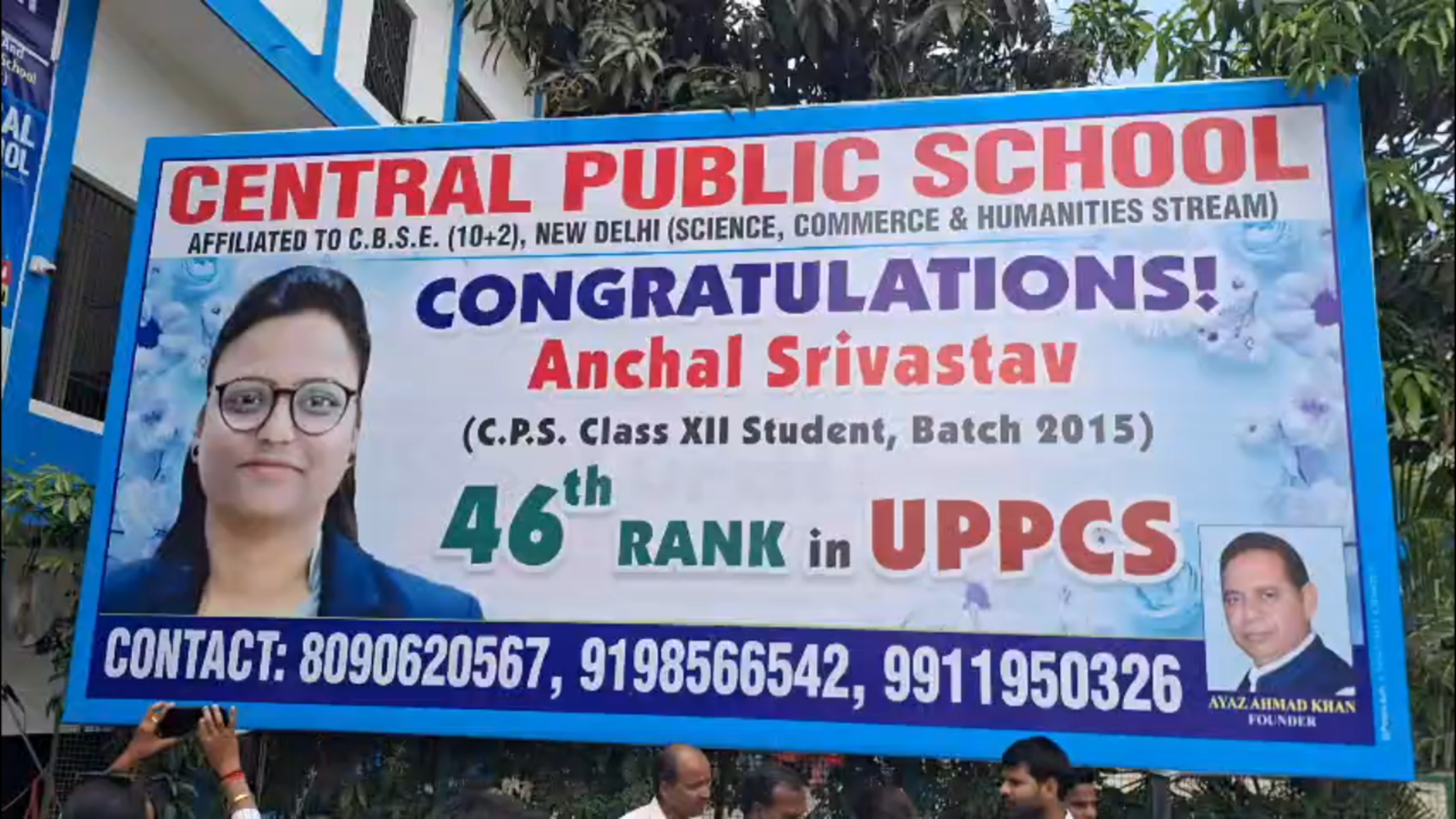 इस अवसर पर विद्यालय के संस्थापक अयाज़ अहमद खाँ ने सबसे पहले ईश्वर को धन्यवाद दिया और कहा कि लगन एवं परिश्रम से सफलता मिलती है। इन्होंने कु० आँचल श्रीवास्तव को बधाई देते हुए कहा कि आप भविष्य में शीघ्र I.A.S. बनें, यही ईश्वर से प्रार्थना है। संस्थापक अयाज़ अहमद खाँ ने इनके परिवार के सदस्यों, सी०पी०एस० परिवार की प्रधानाचार्या एवं सभी शिक्षकों एवं कर्मचारियों को भी बधाई दी तथा यह भी कहा कि सभी के प्रयास एवं दुआओं से यह परिणाम मिलता है। हम सबको अपने बच्चों के लिए दुआएँ करते रहनी चाहिए।
