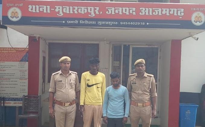 दिनांक 08.04.2026 को व0उ0नि0 वीरेन्द्र यादव मय पुलिस टीम द्वारा मुखबिर की सूचना पर सठियांव चौराहे के पास घेराबंदी कर अभियुक्तगण 1. बृजभान पुत्र स्व0 कान्ता (उम्र करीब 25 वर्ष) 2. गौतम पुत्र ध्यानचन्द्र (उम्र करीब 29 वर्ष) निवासीगण ग्राम भटौरा थाना मुबारकपुर जनपद आजमगढ़ को समय करीब 09:45 बजे गिरफ्तार किया गया। अभियुक्तों को नियमानुसार न्यायालय भेजा जा रहा है।