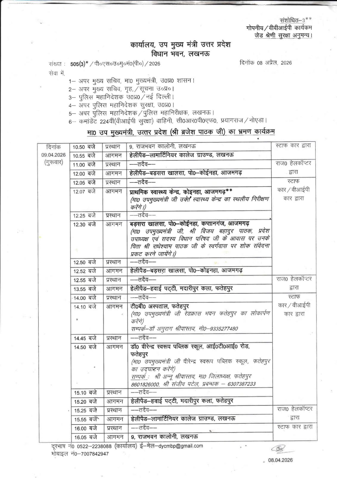 सादर अवगत कराना है कि मा.उप मुख्यमंत्री,उत्तर प्रदेश श्री ब्रजेश पाठक जी का जनपद आजमगढ़ भ्रमण कार्यक्रम