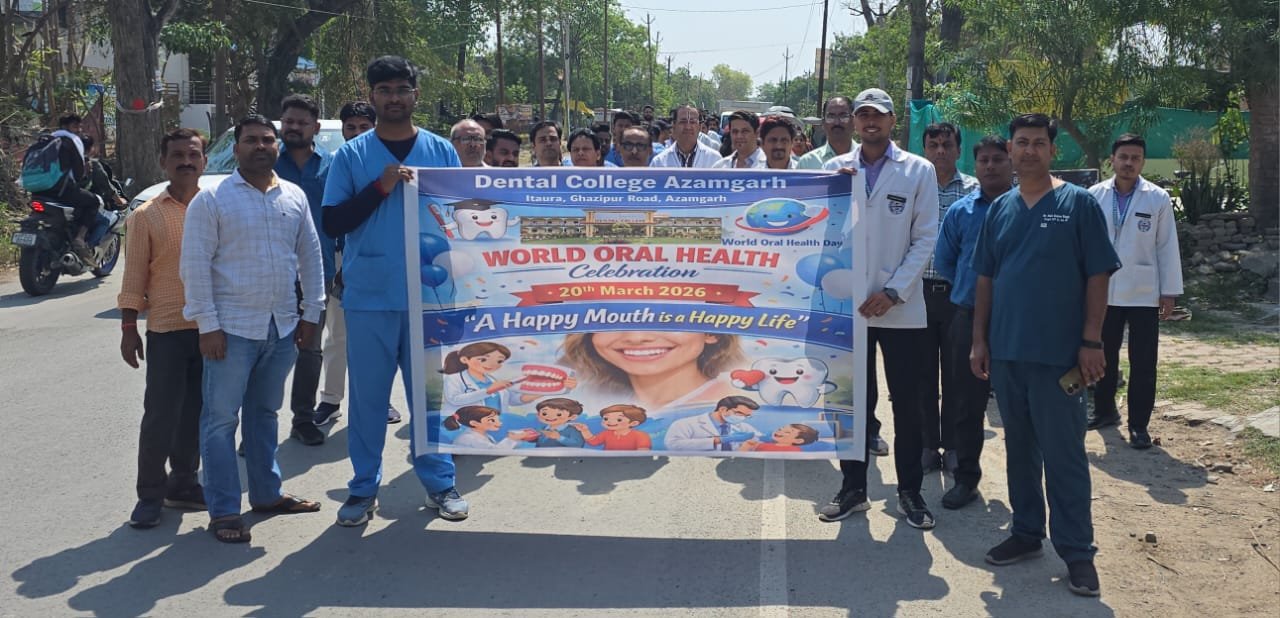 आज़मगढ़, 09 अप्रैल 2026: विश्व ओरल हेल्थ डे जो प्रतिवर्ष 20 मार्च को मनाया जाता है, की निरंतरता में उत्तर प्रदेश के आज़मगढ़ स्थित डेंटल कॉलेज ने आज “A Happy Mouth is a Happy Life” थीम पर “ओरल हेल्थ अवेयरनेस” रैली का आयोजन किया। प्राचार्या डॉ. अरुणा दास के पर्यवेक्षण में कॉलेज के समस्त शिक्षकगण, गैर-शिक्षक स्टाफ, बीडीएस स्नातक एवं स्नातकोत्तर छात्रों ने उत्साहपूर्वक भाग लिया।