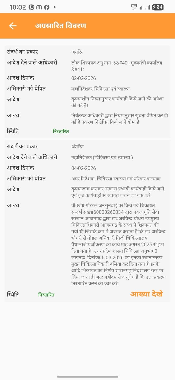 इसी क्रम में एक और गंभीर तथ्य सामने आया है कि संबंधित अधिकारी का स्थानांतरण दिनांक 06 मार्च 2026 को बलिया के लिए कर दिया गया था। साथ ही, दिनांक 08 अप्रैल 2026 को अपर निदेशक, चिकित्सा स्वास्थ्य एवं परिवार कल्याण, आजमगढ़ मंडल द्वारा जारी पत्र में भी उनका कार्यस्थल बलिया ही अंकित है। इसके बावजूद अधिकारी का आजमगढ़ में ही बने रहना शासन की मंशा एवं स्थानांतरण नीति पर प्रश्नचिन्ह लगा रहा है।