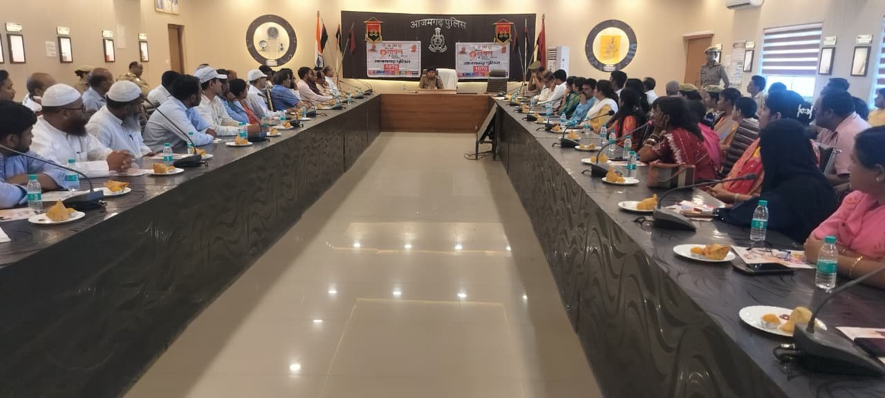 आज दिनांक 16.04.2026 को पुलिस लाइन स्थित सभागार में वरिष्ठ पुलिस अधीक्षक आजमगढ़ के निर्देशन में अपर पुलिस अधीक्षक नगर श्री मधुबन कुमार सिंह एवं क्षेत्राधिकारी सदर श्रीमती आस्था जायसवाल तथा प्रभारी महिला एवं बाल सुरक्षा संगठन उ0नि0 गुरुज्ञान चन्द्र पटेल द्वारा महिला सुरक्षा संबंधी जनपदीय कॉन्फ्रेंस आयोजित की गई। बैठक में जनपद के चिकित्सक, शिक्षक, व्यापार मंडल के प्रतिनिधि एवं विभिन्न छात्रावासों के प्रबंधकों ने प्रतिभाग किया।