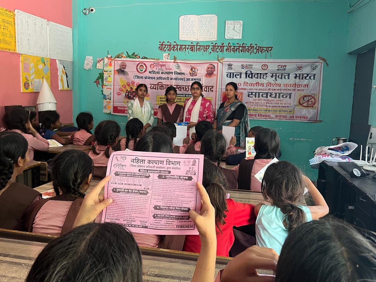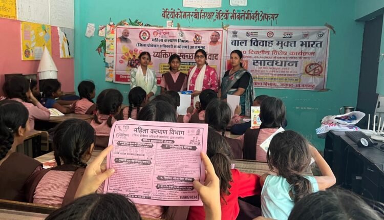 जिलाधिकारी के निर्देशानुसार एवं जिला प्रोबेशन अधिकारी के नेतृत्व में हब फॉर इम्पावरमेन्ट टीम द्वारा जनपद आजमगढ़ में मिशन शक्ति फेज 5.0 द्वितीय चरण के अन्तर्गत ’’व्यक्तिगत स्वच्छता संवाद व अक्षय तृतीया’’ के उपलक्ष्य में कस्तुरबा गॉधी आवासीय बालिका विद्यालय सठियॉव मंे बाल विवाह के विरूद्व जागरूकता कार्यक्रम आयोजित किया गया।