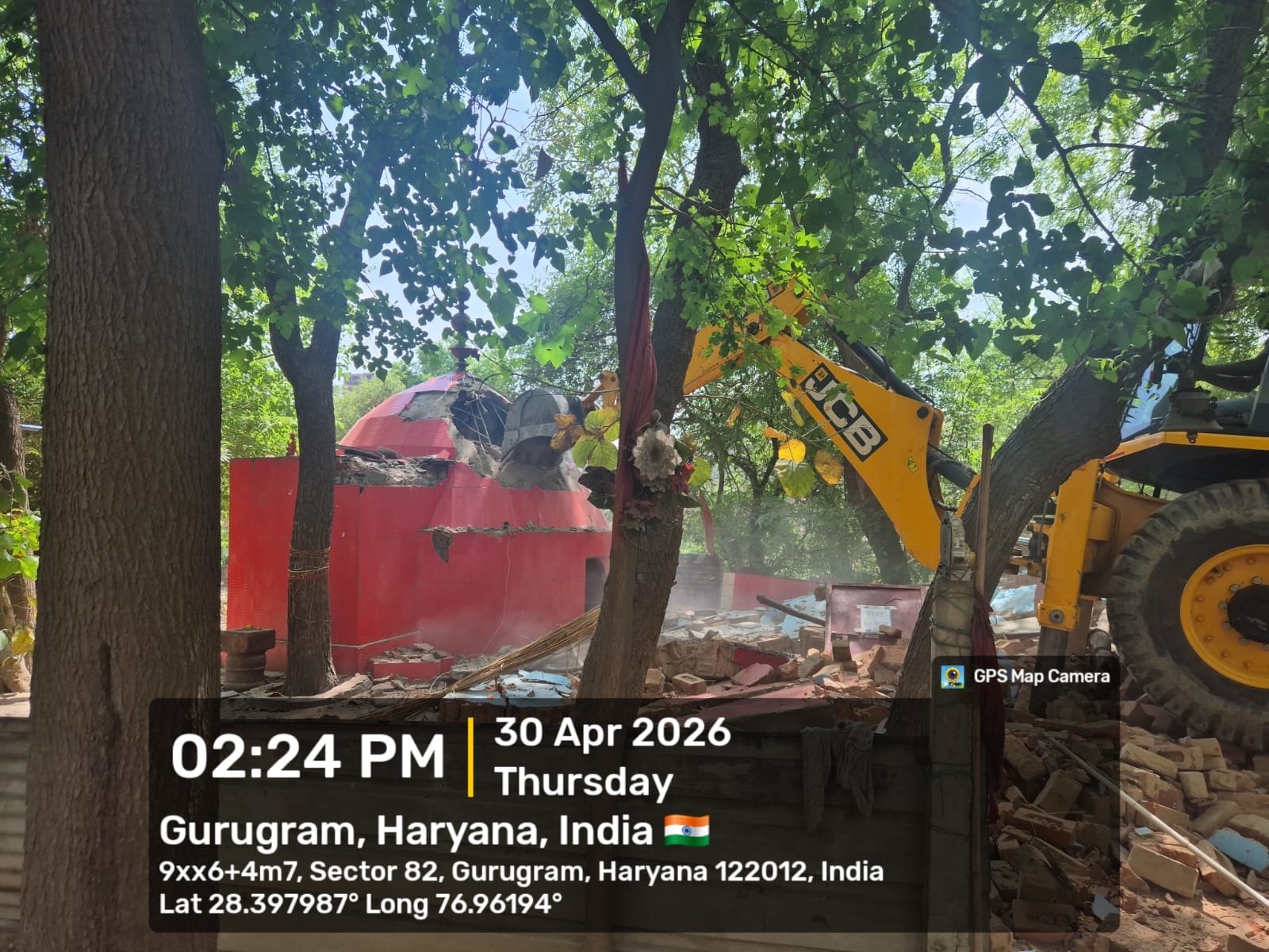 गुरुग्राम। बृहस्पतिवार दोपहर को हरियाणा शहरी विकास प्राधिकरण (एचएसवीपी) ने, सेक्टर 82 रोड की जमीन खाली कराई एचएसवीपी के अजमेर सिंह जी सर्वे एसडीओ ने बताया सेक्टर 82 गांव सिकंदरपुर की जमीन पर मंदिर बना हुआ था और 5 टीन के कमरे बना रखे थे इंफोर्समेंट टीम ने मौके पर पहुंचकर कार्रवाई करी अवैध कब्जा कर रखा था और बोले सरकारी काम में बाघा डालोगे तो उन सबके खिलाफ एफआईआर दर्ज कराई जाएगी और बोले सरकारी जमीन पर कब्जा बर्दाश्त नहीं ओर दो एकड़ जमीन खाली कराई और फिर आगे की कार्रवाई की गई और सेक्टर 82 रोड की जमीन खाली कराई जिसमें पांच कमरे व मंदिर व झुकी झोपड़ी बना रखे थे उन सब को एक जेसीबी द्वारा तोड़ दिये और एचएसवीपी के आनंद प्रकाश जेई ने बताया इस जमीन पर रोड का काम रुका हुआ था GMDA के द्वारा रोड बनाना है और GMDA के एसडीओ हेमंत सैनी मौके पर मौजूद था और एनफोर्समेंट के संजीव यादव ने बताया यह जमीन विभाग द्वारा अधिग्रहण की हुई थी इसका मुआवजा गांव सिकंदरपुर पंचायत को विभाग द्वारा दे दिया गया है आगे से यहां पर कब्जा किया तो बक्सा नहीं जाएंगे और विभागीय कार्रवाई की जाएगी ओर हरियाणा शहरी विकास प्राधिकरण ने, सेक्टर 82 रोड की जमीन खाली कराई